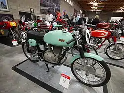 After World War II Bianchi produced 123 cc and 248 cc ohc single racers, and in the late 1950s released new 248 cc and 348 cc dohc twins, designed by Colombo and Lino Tonti. A few 348 cc engines were over-bored to 498 cc to produce works versions for the 500 cc class races.[1] In 1946 Edoardo died, and control of the firm passed to his son Giuseppe.