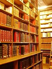 The college of theology, Maison de Sorbonne, was established at the Collège de Sorbonne in 1257 by Robert de Sorbon.[3] Its library, the Library of the Collège de Sorbonne was founded in 1289.[4] In the 1700s, the Jesuits, before leaving the Sorbonne, gave away their buildings and books to the University of Paris. In 1791, during the French Revolution, the library disbanded, and the books (of which there were 25,000 volumes on the eve of the Revolution) were distributed to other libraries. After the Revolution, the Sorbonne was rebuilt at the location of the medieval buildings. In the late 1800s, after the Napoleonic era, the library of the university started functioning from the Bibliothèque de la Sorbonne.[4]