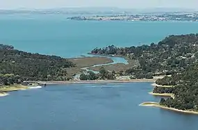 The creek was traditionally called Paruroa by Tāmaki Māori, meaning "wide mud", sharing meaning with the English language name.[2] The creek was important to Te Kawerau ā Maki, the mana whenua of the area, as a place where pātiki (flounder) could be netted.[3] Two Te Kawerau ā Maki kāinga (unfortified villages) existed in the area: Nihotupu, at Armour Bay close to the modern village of Parau, and Ngāmoko, near the Lower Nihotupu Dam.[3]