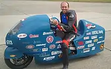 ![]() Warner on his 311.9 mph speed record motorcycle (2011) | |