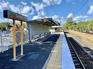 Birkdale station opened in 1889 at the same time as the line.[3][4] On 1 November 1960, the station closed when the line was truncated to Lota.[5] The station reopened on 26 July 1986 as the line was being rebuilt to Cleveland.[6]