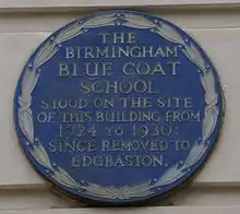 - "Blue Coat School, Birmingham". Open Plaques. Open Plaques community-based project. Retrieved 13 November 2019.