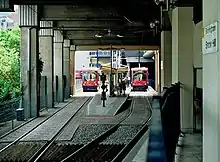 Work began on a new entrance on Livery Street to give commuters access to the lower Snow Hill and Jewellery Quarter part of the city centre in 2005, but it did not open for business until March 2011.[24] The work had a projected cost of £9.94 million, but due to Centro's failure to apply for planning permission, and severe technical difficulties, the cost rose to at least £17 million.[25] Although construction and interior finishes' works were largely complete by December 2010, legal disputes between London Midland, Network Rail and Centro caused delay to the opening of the entrance by over a year.[25] The former tram terminus platform is intended to be returned for use for mainline trains as a fourth platform.[26] However as of September 2020, little work has been conducted other than disconnecting and partial lifting of the former tram line. The fourth platform is now expected to be completed by 2026.[27]