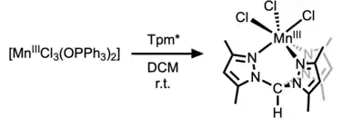 Bis(triphenylphosphineoxide) manganese(III) chloride is a coordination complex of manganese(III) chloride. Unlike most compounds containing "Mn(III)Cl3", [MnCl3(OPPh3)2] can be stored under normal laboratory conditions.[1] It is a blue, paramagnetic solid.
