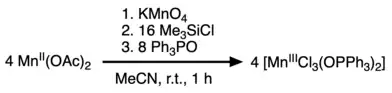 Treatment of meta-stable solutions of Mn(III)Cl3 with triphenylphosphine oxide results in precipitation of solid [MnCl3(OPPh3)2]. This compound was first prepared using the thermally unstable ethereal adduct (dioxane)Mn(III)Cl3.[2] A convenient synthesis starts from Mn(OAc)2, trimethylsilylchloride, and potassium permanganate.[3]