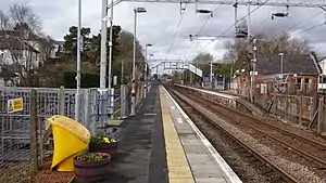Bishopton railway station serves the village of Bishopton in Renfrewshire, Scotland. The station is on the Inverclyde line, 13 miles (21 km) west of Glasgow Central. It opened on 29 March 1841.[2] The station is managed by ScotRail.