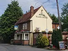 The Black Horse is a Grade II listed public house at 65 Blackhorse Lane in South Mimms, Hertfordshire, England. It can be dated to the early 17th century -as early as 1642- and is of red brick with a tiled roof. It has been kept in its original style, with traditional decor and original bay windows.[1] The building was registered in 1650 alongside the blacksmith building nearby, which can still be seen in disarray among the trees on the north-eastern side. Blackhorse Lane, which may be named after the pub, is the lane along which South Mimms developed.