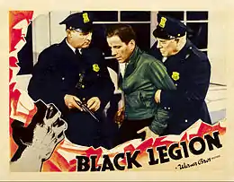 Black Legion is a 1937 American crime drama film, directed by Archie Mayo, with a script by Abem Finkel and William Wister Haines based on an original story by producer Robert Lord. The film stars Humphrey Bogart, Dick Foran, Erin O'Brien-Moore and Ann Sheridan. It is a fictionalized treatment of the historic Black Legion of the 1930s in Michigan, a white vigilante group. A third of its members lived in Detroit, which had also been a center of the Ku Klux Klan in the 1920s.