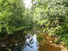 The rocks underlying the Black Moshannon Creek drainage basin are primarily shale, sandstone, and coal.[47] Three major rock formations are present in Black Moshannon State Park, all from the Carboniferous period. These sedimentary rocks formed in or near shallow seas roughly 300 to 350 million years ago.[48] The Mississippian Burgoon Formation is composed of buff-colored sandstone and conglomerate. The late Mississippian Mauch Chunk Formation is formed with grayish-red shale, siltstone, sandstone, and conglomerate. The third is the early Pennsylvanian Pottsville Formation, which is a gray conglomerate that may contain sandstone, siltstone, and shale, as well as anthracite coal.[48][49]
