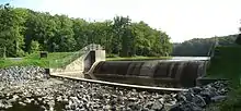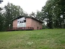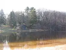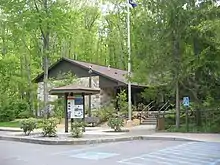 On November 11, 1954, the park was officially named "Black Moshannon State Park" by the Pennsylvania Geographic Board. The CCC-built dam forming Black Moshannon Lake was replaced in the 1950s, and the current Kephart Dam was built in 1974.[18][38] The park experienced major developments between 1971 and 1980.[23] Time has brought changes to the park's CCC-built structures: the original picnic pavilion 6 collapsed under snow in 1994,[18] the museum became the Environmental Learning Center, most of the latrines are gone, and six modern cabins and two deluxe cottages have been built in the Cabin Historic District. As of 2020, other post-war facilities include the park office, boat launches, showerhouses, electric vehicle charging stations, and modern restroom and shower facilities.[37][39] There is a wastewater treatment plant near the dam for effluent from the park and some private homes.[40] In 2019, the state paid $299,000 to the Philipsburg Rod and Gun Club, which had leased 23 acres (9.3 ha) near the Organized Group Tenting area in the park for over 60 years. The state terminated the lease over environmental contamination from lead shot.[41][42]