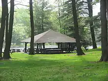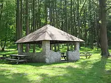 There are eight picnic pavilions built by the CCC in the park, which can be reserved for a fee. In addition to the pavilions, Black Moshannon State Park has 250 picnic tables in four large picnic areas. The use of these picnic tables and unreserved pavilions is first come, first served, and they are free of charge.[37]