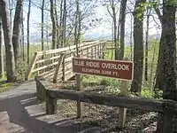 The 7.2-mile (11.6 km) James E. Edmonds Trail is named for "Mr. Eddie" Edmonds, one of the park's earliest and longest-serving rangers. This rugged trail features four secluded campsites that allow backpackers with reservations to escape into the park's quiet backcountry. The campsites are undeveloped and offer no facilities. In places the Edmonds Trail weaves in and out of laurel-filled coves and follows mountain streams with small waterfalls.[3] At the trail's northern end, there are 3,162-foot (964 m) Lookoff Mountain and views of Wolffork Valley, the source of the Little Tennessee River.