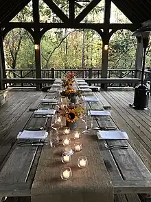The grounds cover 4,200 acres (1,700 ha), and the resort has 62 rooms.[8] Blackberry Farm hosts culinary, musical and outdoor sporting activities and events on and off property.[9] The property includes a timberframe barn from Pennsylvania, a dining and entertainment venue, a spa, an events hall, and guest cottages.
