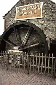 | World of Timber / Blackgang sawmill | 1981 | 2016 | This was originally called "Blackgang Sawmill", and was a separate attraction from the main park (though visitors could buy a combined ticket for both). The original narration was by TV presenter John Craven . It was an award-winning heritage exhibition 'telling the story of timber' in the setting of an old water mill. Some of the features included the workshops of the blacksmith and wheelwright, the mill owner's cottage, numerous working steam and oil engines, 'Timber at Sea', 'Timber in the Home' and the Mill Pond Gardens, water from which drove the water wheel. This attraction was closed and all its exhibits removed in 2016. | ![]() Inside blackgang sawmill. ![]() | |