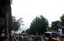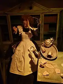 During Victorian times, people were seeking out new healthy holiday resorts, ideally near the coast. As the railway network was getting closer and closer to the south coast, the Isle of Wight was becoming an increasingly attractive holiday destination. Alexander Dabell, the founder of the park, soon realised the business potential of this, trying various ventures. In 1839 Alexander became friends with a publican who had recently built a hotel at Blackgang, which now forms the Chine Cafe (formerly Pirates' Pantry restaurant) and administration offices.[1] After studying the gault and chine gorge, he knew instantly that gardens could be set up that would appeal to the Victorians as a romantic holiday destination. This along with the increasing popularity of the adjacent Sandrock Spring (a chalybeate spring) led to Alexander concluding a lease for the site in 1842 and the establishment of Blackgang Chine amusement park in 1843. The area was then opened up to the public with pathways built down to the ravine and gardens landscaped on the cliffs. Steps were built to give access to the beach from the lower road. Since the park was opened, it has remained a family business, with the descendants of Alexander Dabell owning it ever since.[3][4] The park's claim to have been established in 1843 would make it the oldest theme park in the United Kingdom. Its initial theme of a general-purpose scenic and curiosity park led to one of its most famous attractions, a large whale skeleton, which had been washed up near the coast of The Needles in 1842, and is still a showpiece today.[1]