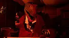 Featuring wallace the butler and darwin the allosaurus . Built on the site of the old swimming pool of the adjacent house five rocks ( rumpus mansion ) The Triassic Dinner Club was removed in 2016 , but the dinosaurs made a one off appearance for a dinosaur themed event a few years later . This area now houses the mouth of hell . |