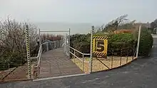 The location is based on unstable terrain owing to the underlying Gault Clay strata, resulting in a succession of huge landslips giving the area a very rugged appearance akin to the better known Jurassic Coast.[9] Currently the cliffs are eroding at a rate of about 3.5 metres per year, although this process is not gradual nor consistent.[10] Continuing landslides and coastal erosion swept away the paths in the early 1900s, and have since obliterated the chine itself and repeatedly forced the park owners to move the clifftop facilities inland.[3]