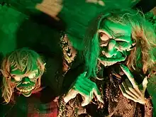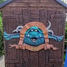 | Rumpus Clock Tower | 1994 | 2005 | Animated clock tower which formed the entrance to the bridge towards Rumpus Mansion. At fifteen and thirty minute intervals, various monsters and goblins emerged from behind doors. Upon the hour, a trow lifted the roof up, and two giant gargoyles next to the clock rocked back and forth. A surviving goblin can be found at the entrance to the current fairyland . A surviving gargoyle can be found near rumpus lawn by a pathway. | ![]() a survivor from the rumpus mansion clock tower | |