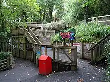 | Fort Tortuga | 1997 | 2007 | Themed pirate fort play area, with slides, climbing nets and raised walkways. Also in the fort was a strongroom containing a locked treasure chest and a giant compass. Hidden around the fort were four compass directions. Entering these into the compass opened the treasure chest, revealing pirate gold inside. This area was replaced by The Wight Experience in 2008. The skull from the entrance of fort tortuga was reused at the entrance to the pirates play area near dodo valley. Two of the bones have been reused outside of the Quack Shack . | ![]() the entrance to fort tortuga ( now unused ) | |