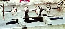 ![]() the stocks and pillory in the 1960s. ![]() the stocks and pillory in their last location near the crooked house. | |