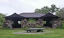 In 1886 Horace Cleveland planned the laid out of Blackstone Boulevard and it was constructed in 1894 to provide better access to nearby Swan Point Cemetery. The park in the center was planned and suggested by the Olmsted Brothers.[2]