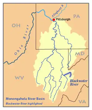 ![]() Map of the Monongahela River basin, with the Blackwater River highlighted. | |