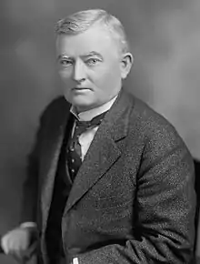 Legislative activity initially focused on the Senate. Among the bills filed at the start of the session was one by Senator Hiram Bingham III (R-Conn.), which amended the Volstead Act to permit the manufacture of beer which was 4 percent alcohol by weight. His bill would not have modified the 18th Amendment.[6] Republican "wets" were able to win a minor victory on December 23, 1931, when they secured an agreement establishing a subcommittee of the Senate Judiciary Committee which would hold hearings regarding modification of the Volstead Act and repeal of the 18th Amendment.[7] Senator John J. Blaine (R-Wisc.), a leader of the Senate's Republican "wets",[4] was named subcommittee chair.[8] Although the five-member subcommittee had a three-member "dry" majority,[8] "wets" only wanted to use the subcommittee to lay the groundwork for a vote (at some indeterminate future) on a Prohibition bill (of some undetermined type).[7] "Wets" won another victory a few days later when the Senate Committee on Manufactures agreed to hold hearings on Bingham's 4 percent beer bill.[6]