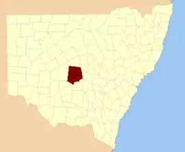 Blaxland County is one of the 141 Cadastral divisions of New South Wales. It is bounded to the south by the Lachlan River and a small part of Waverley Creek. It includes Mount Hope and the Nombinnie Nature Reserve.