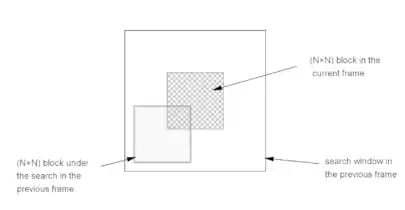 The search area for a good macroblock match is decided by the ‘search parameter’, p, where p is the number of pixels on all four sides of the corresponding macro-block in the previous frame. The search parameter is a measure of motion. The larger the value of p, larger is the potential motion and the possibility for finding a good match. A full search of all potential blocks however is a computationally expensive task. Typical inputs are a macroblock of size 16 pixels and a search area of p = 7 pixels.