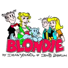 ![]() Blondie logo, featuring Dagwood, Blondie, Daisy, son Alexander, and daughter Cookie. | |