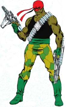 ![]() The Robert DuBois incarnation of Bloodsport as depicted in Who's Who: Update '97 #1 (August 1987). Art by John Byrne. | |