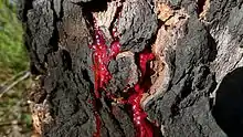 Trunk of Corymbia gummifera with red bleeding (Kino)
