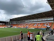 ![]() The current stadium, looking north, as visitors Fulham kicked off the first-ever Premier League match at Bloomfield Road on 28 August 2010 | |
