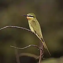 The blue-cheeked bee-eater (Merops persicus) is a near passerine bird in the bee-eater family, Meropidae. The genus name Merops is Ancient Greek for "bee-eater", and persicus is Latin for "Persian".[2]