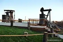 Along the Blue Water River Walk is an old railroad ferry dock. This ferry dock has been completely restored and made available as a place to view the St. Clair River. The decking is made of Brazilian walnut and new railings, lighting, and stairs have been added. An old functioning railroad signal light welcomes visitors to the ferry dock.[1]
