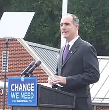 On March 28, 2008, Casey endorsed frontrunner Barack Obama in the Democratic Party presidential primary.[22] The Pennsylvania Report said that he "struck gold" by endorsing Obama early in the 2008 Democratic presidential primary, a move that gave him "inside access to the halls of the White House".[23] Casey campaigned across Pennsylvania in support of Obama's candidacy in the months leading up to the primary in that state; they bowled together at Pleasant Valley Lanes in Altoona.[24]