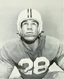 In 1951, Ward was a consensus All-American as selected by the Associated Press, United Press International, The Sporting News, and the International News Service. He was also named the 1951 Southern Conference Player of the Year, the Washington D.C. Touchdown Club Lineman of the Year, and the Philadelphia Sports Writers Association Lineman of the Year.[13] He was again selected to the All-Southern Conference team in 1951.[12] Ward was voted as Maryland's Most Valuable Player all four years of his playing career and twice received the Anthony C. Nardo Memorial Trophy for the team's most outstanding lineman. His jersey number, 28, was the first to be retired by the University of Maryland.[14]