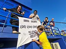 When women's football became professional in Argentina in 2019,[9] 21 Boca Juniors players signed their first contracts in August.[1] Another landmark in Boca Juniors women's was on 19 March 2019, when the team played a match at La Bombonera for the first time, following a club's initiative to commemorate the International Women's Day. The match was held in the round 5th of the 2019 championship, with Boca easily defeating Lanús 5–0.[10] The historic first goal was scored by Yamila Rodríguez.[11]