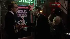 Body Double contains a film within a film sequence in which pop band Frankie Goes to Hollywood performs their song "Relax"[12] on the set of a pornographic film, and in which scream queen Brinke Stevens,[13] and adult actresses Cara Lott and Annette Haven appear. The club scene was converted into a music video and shown on MTV.[14] Voice actor Rob Paulsen makes a cameo as a cameraman who utters "Where's the cum shot?".[15]
