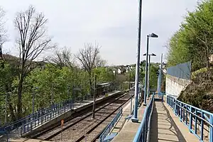 Boggs is a station on the Overbrook branch of Pittsburgh Regional Transit's light rail network. It is located in the Beltzhoover neighborhood of Pittsburgh. Boggs is a high level handicap accessible station that exits onto Boggston Ave. and Sylvania Ave. The station serves commuters from the hilly, residential neighborhood.