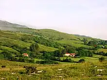 Boho parish has a high biodiversity of flora and fauna due in part to the niches offered by the limestone karst substrata combined with fen meadow, upland heath and acidic bog. The three mountains found within the parish; namely Glenkeel, Knockmore and Belmore provide a landscape varying from high craggy bluffs, with views of neighbouring counties, to low, flat bogland punctuated by streams and lakes.[4] Below this landscape are two of the three most cave-rich mountains in Northern Ireland,[5] featuring the deepest cave system in Ireland at Reyfad Pot, the deepest daylight shaft in Ireland at Noon's Hole, as well as popular caves for local outdoor adventure centre groups at the Boho Caves and the nearby Pollnagollum Coolarkan.[5]