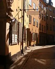Bollhusgränd (Swedish: "Ball House Alley") is an alley in Gamla stan, the old town in central Stockholm, Sweden. Named after Bollhuset, a historical theatre, it connects Slottsbacken to Köpmantorget, and as Baggensgatan extends the alley further south beyond Köpmangatan, together they form a parallel street to Österlånggatan and Själagårdsgatan.