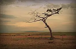 The 972 square kilometres (375 sq mi) catchment area of the lake is located in a forest steppe zone. The lakeshore is low and gentle, with grassland and bushes. Bolshoy Yeravna has a roughly round shape and is fed by three small rivers, the Tuldun, Indola and Zhipkesen. In the southwestern side it has an outlet, a small sound connecting with neighboring Lake Sosnovo. To the east lies Maly Yeravna lake.[1] When the water levels are high the Yeravna lakes are connected with each other by intermittent channels. The outlet of the lake area is via the Khorga lakes to the northeast through the Kholoy, a small, shallow tributary of the Vitim River flowing from Isinga lake at the northeastern end.[3]