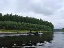 The Bolshoy Yugan is a river in Russia, it flows through the territory of Surgutsky and Nefteyugansky Districts of Khanty-Mansi Autonomous Okrug. A left tributary of the Ob, it discharges into the Yuganskaya Ob, a branch of the Ob. The length of the river is 1,063-kilometre (661 mi), its basin area is 34,700-square-kilometre (13,400 sq mi).[1] The average annual water consumption at 118-kilometre (73 mi) from the mouth of the river is 177.67-cubic-metre-per-second (6,274 cu ft/s).