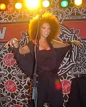 On 2006's Confessions Tour, "Borderline" was sampled on an introduction video that led to "Music" (2000), along with "Holiday", "Dress You Up" (1985), and "Erotica" (1992).[90] An arena rock rendition of "Borderline", with Madonna playing a purple Gibson Les Paul electric guitar, was performed on the Sticky & Sweet Tour.[91][92] The singer wore 1980s-styled gym shorts, while the backdrops depicted graffiti and artwork inspired by Keith Haring.[91] From the Houston Press, Chris Gray referred to the number as a "stunner [...] one of several instances where [Madonna] proved her guitar was far more than a prop".[93] The performance was included on the Sticky & Sweet Tour live album release (2010), recorded during the four concerts in Buenos Aires, Argentina.[94]