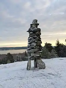 Borgåsgubben is a 10-foot-tall male figure statue made of different sizes of stone-bricks put together. He stands on top of a mountain called Borgåsen, in Källtegen, Blomskog,[1] Årjäng, Sweden.[2] Why he was put there is unknown, but rumor has it that he was put there to frighten off enemies. It was supposed to give those attacking a vision of a living guard post. It was built in times of war between Sweden and Norway around 1600-1700. Many believe that the stone statue was made by soldiers called caroleans, soldiers that served in the army under the Swedish King Charles XII's rule. Charles and his soldiers were passing by and were on their way to Fredriksten fortress in Norway when they stopped in Blomskog.