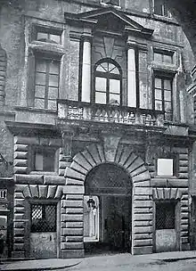 In front of the Traspontina, Antonio da Sangallo the younger erected between Borgo Vecchio and Borgo Nuovo the Palazzo del Governatore di Borgo ("Borgo's governor palace"), originally designed as home of apostolic Protonotary Giovanni dal Pozzo; after being converted into jail, the building decayed.[40][41] The palace was demolished in 1937, but its portal was reused in a new building erected by Marcello Piacentini at Via della Conciliazione n. 15.[42]