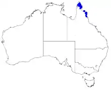 This boronia grows in woodland and heath on Cape York Peninsula as far south as near Cooktown.[2][3]