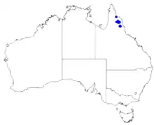 This boronia grows in woodland and heath in sandstone country south of Laura and disjunctly on Mount Mulligan further south.[4]