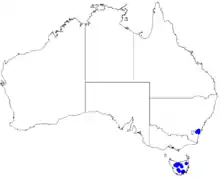 The broad-leaved boronia grows in swampy heaths in New South Wales and Tasmania. It is found in the Tasmanian highlands and in New South Wales on the Southern Tablelands, mainly in the Budawang Range.[2]